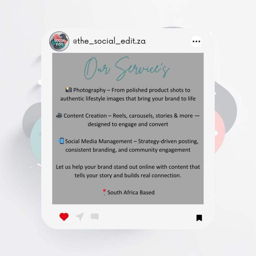 ✍️ Content Creation – Captions, visuals, and storytelling tailored to your brand.